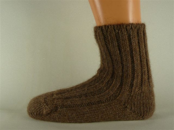 Kurzschaftsocken mit rechts/links glatter Sohle und Rippstruktur über Fußrücken und im Schaft. Wie von Hand gestrickt – 3er Ware. Besonders wärmend auf der Haut. Auch als „Übersocke“ zu tragen. Der Rippschaft ist ohne Gummi – für starken Fesselumfang geeignet.