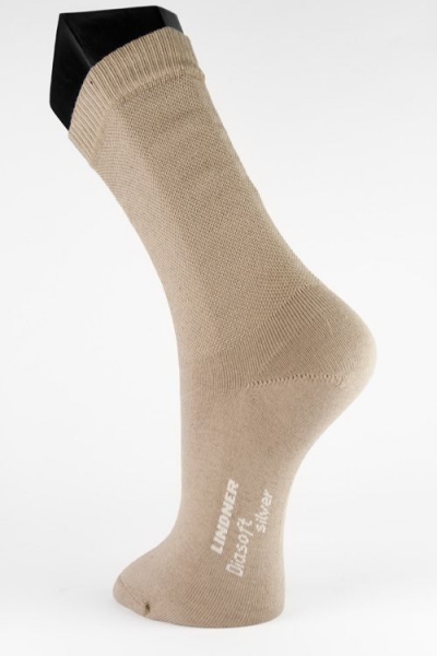 Der völlig ohne einschneidende Gummifäden gefertigte Artikel Diabetikersocke Diasoft ist in einer bewährten Technologie gefertigt, die seit langem Anwendung bei der Herstellung von für Diabetiker geeigneten Socken und Strumpfwaren findet. Der Diabetikerstrumpf Diasoft besitzt einen extra weiten Schaft, wodurch er nicht einschneidet. Die Spitze ist selbstverständlich handgekettelt, um an dieser Stelle die Bildung von Druckstellen zu vermeiden. Durch die Verwendung eines silberhaltigen High Tech Fadens konnte die Diebetikersocke in seinen Funktionalitäten erweitert und ergänzt werden. Die perfekte Socke für Diabetiker - Diasoft von LINDNER medical.